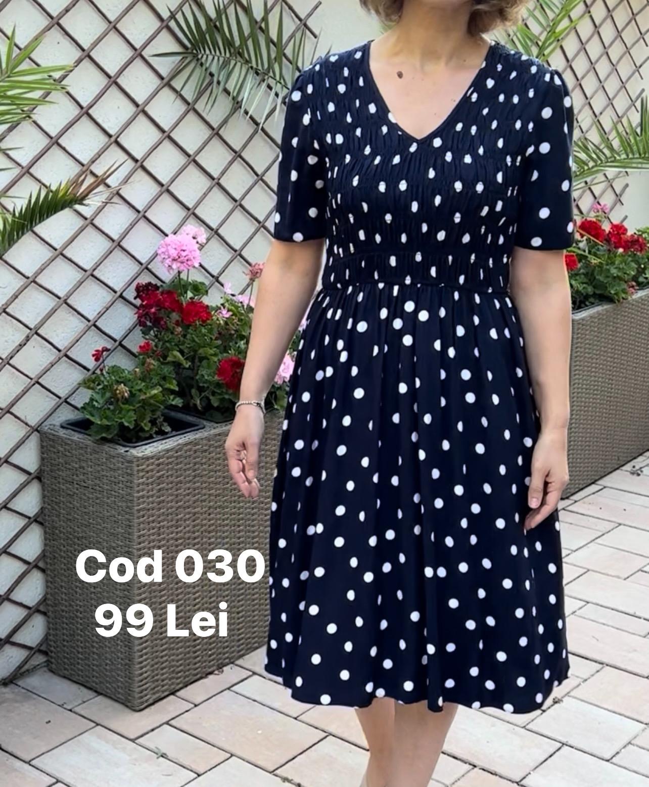 Rochie din VISCOZA NATURALA,bustul si talia sunt realizate cu fire de elastic subtire tip siring ,pozitionat orizontal pe tot pieptul.
